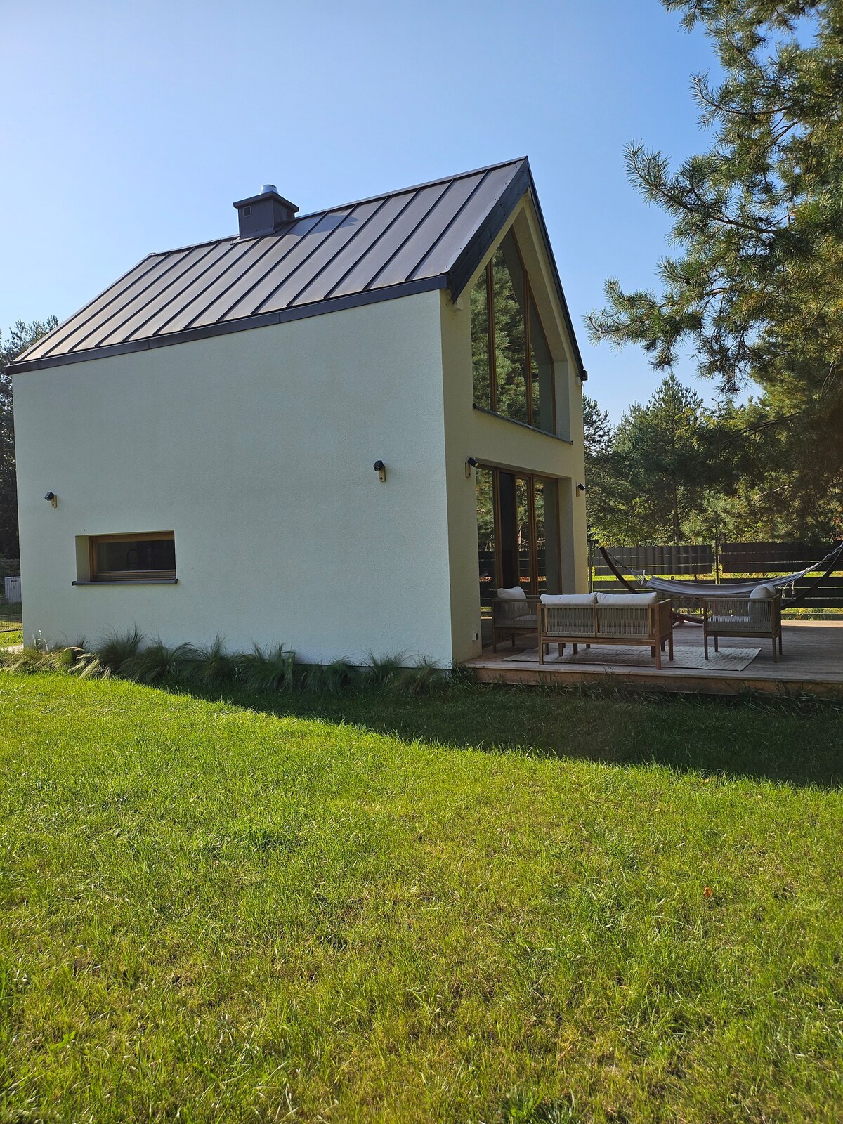 Domek otoczony jest prywatną, ogrodzoną działką 700 m², która zapewnia swobodę wypoczynku i poczucie prywatności. W ogrodzie znajduje się miejsce na ognisko, grill oraz przestrzeń do relaksu na świeżym powietrzu. Bezpośrednie sąsiedztwo lasu pozwala cieszyć się ciszą i spacerami tuż za bramą. Ogrodzony teren jest komfortowy dla par, rodzin i osób z psem. To idealne miejsce na romantyczny wypoczynek blisko natury. Nad morze można dojechać samochodem w około 20 minut.