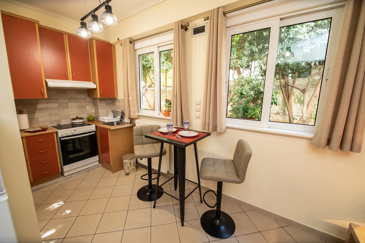 Afina şəhərindəki yaşıl eviniz, özəl girişi ilə mənim gözəl şəhərimdə görməli yerləri gəzdikdən sonra dincəlmək üçün ideal yerdir. 1-4 qonaq üçün rahat və şirin ev, tam təchiz olunmuş mətbəx və mükəmməl yerləşməniz üçün lazım olan bütün imkanlara malik gözəl bir hamam. Yaşıl eviniz Afinada sizi qəbul etməyə hazırdır, hansı səbəbdən ziyarət etməyi seçsəniz də. Mərkəzə çox yaxındır, həmçinin şəhərin bütün böyük xəstəxanalarının yanındadır (Laykos, Paidon, İppokratio və s.)