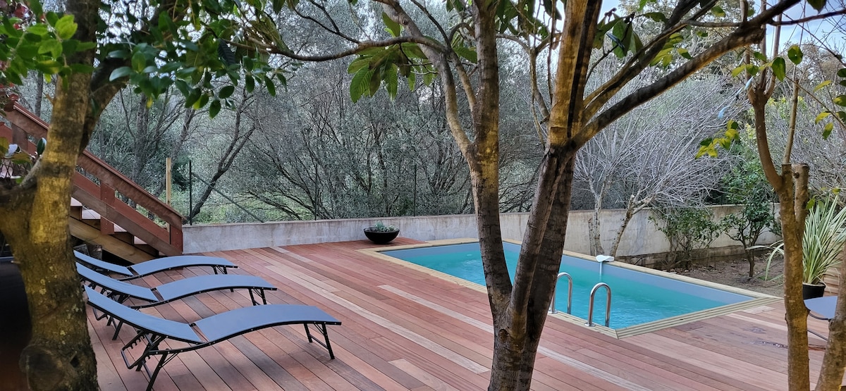 Logement de charme à 12 mn à pied des restaurants et boutiques du centre ville de Porto vecchio. Vous apprécierez son espace extérieur et son coin détente et une piscine partagée. Sa situation privilégiée vous permet de vous évader vers les plus beaux sires de Corse du sud. (Palombaggia, santa Guilia, Bonifacio, piscines naturelles de cavu,les aiguilles de Bavella et bien autres..) La convivialité et la simplicité sont de mise..