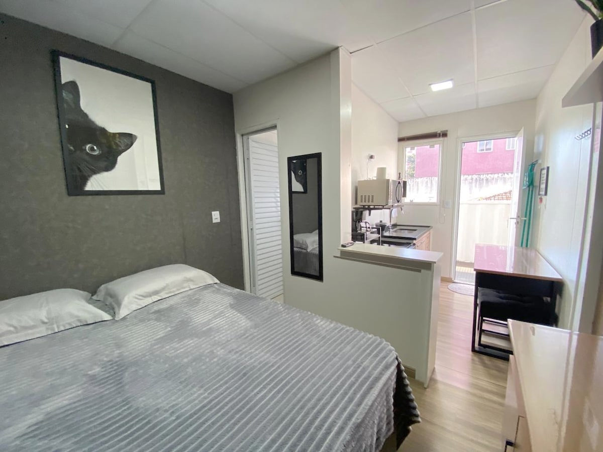 Gözəl mənzərəsi olan və hava limanından 15 dəqiqəlik, Kuritibanın mərkəzindən isə 20 dəqiqəlik məsafədə yerləşən mənzil. Burada 1 yataq otağı, 1 hamam otağı, qonaq otağı, istifadəyə hazır mətbəx, wi-fi və avtomobil üçün yer var. Birbaşa mərkəzə gedən avtobus dayanacaqlarına, eləcə də yaxınlıqdakı barlara, restoranlara, banklara, çörək zavodlarına, restoranlara və bazara yaxındır. Təhlükəsiz bir yerdədir. Qarşısında meydan günortadan sonra dincəlmək üçün mükəmməldir.