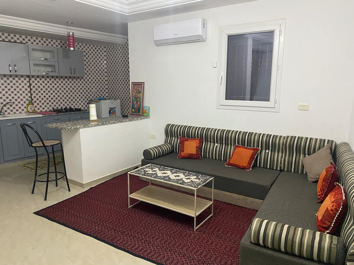 Bienvenue dans notre appartement. Votre place idéal pour vos vacances. Notre appartement S+2 offre un interieur confore avec chauffage central et climatisation pour un séjour agréable en toute saison. L’appartement est neuf et equipé de deux chambres ; un salon et une cuisine bien equipé et un balcon pour vos moments de détente. L’appartement peut accueillir jusqu’à 3personnes et un Bebe. -Le bâtiment est surveillé par des caméras de sécurité et accessible à toutes les attractions locales.