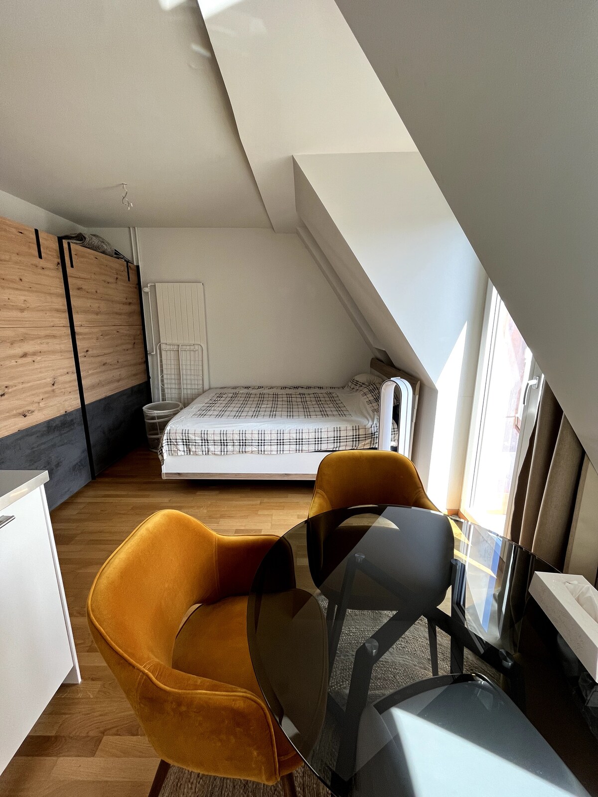 Qonaqlama yeri: Tellhof Studiyası canlı Kreis 4-ün ortasındakı öz kiçik döşəmə mənzilidir. Öz girişi vasitəsilə mənzilin interyerinə daxil olursunuz. Burada diqqətlə dizayn edilmiş interyerimiz sizi evinizdəki kimi hiss etdirəcək. Qonaqlamanız üçün lazım olan hər şeyi tapacaqsınız: aşpazlıq ləvazimatları, oturma yerləri, geniş duş və ayrıca tualet ilə təchiz olunmuş mətbəx. Yataq otağında rahat çarpayı və bir nəfərlik çarpayı var.