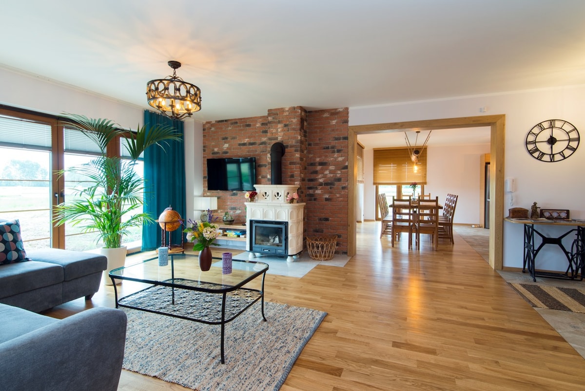 İkimərtəbəli 3 yataq otağı (iki meqapolisdə olmaqla), taxta pilləkənlər, qonaq otağı və hamam otağı olan mətbəx. Bağçalar arasında Vistula çayının yaxınlığında sakit bir yer.